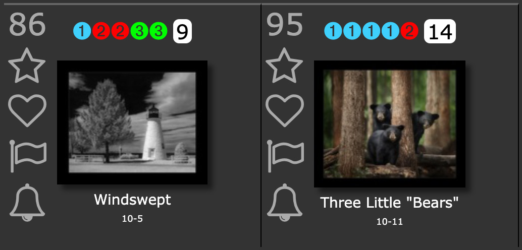 After collecting the votes, the scorekeeper will see the number of votes and the number of points each image receives. ➊ gets 3 points. ➋ gets 2 points. ➌ gets 1 point. |